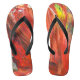 Rich reds dominate the surface, balanced by warm earth tones and flashes of green, creating depth and visual tension.