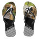Fotos customizáveis do cão de filhote de cachorro do pugilista em chinelos com os PUGILISTAS do texto. As cores são jovem corça marrom, preta, branco e verde. A parte inferior é preto e as correias superiores são pretas também. Você pode personalizar o texto contudo que você gosta, mas não esquece permanecer nas directrizes.