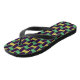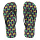 Chinelos roxos e verdes que apanham os olhos com padrões geométricos de inspiração africana, ideais para as passagens de praia.