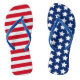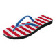 Chinelos legal e patriotas! O flop sacudir esquerdo é vermelho e listras brancas, o flop sacudir direito é azul com estrelas brancas!