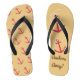 Estes chinelos de batatas fritas não têm um fundo bege. O calçado esquerdo tem um padrão de ancoragem repetido. No calçado direito, duas âncoras maiores e as palavras "Âncoras longe!"