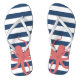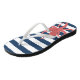 Este moderno chinelos de estilo praia contém um polvo vermelho sobre um fundo listrado branco e marinho azul. Você pode personalizar esses chinelos com sua inicial.