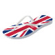 Personalize o nome nesses chinelos patrióticos de bandeira da Union Jack. Vermelho britânico clássico, branco e azul. A bandeira do Reino Unido. Personalize o pé esquerdo e direito.