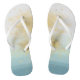 Chinelos de verão com listras de cor azul-d'água do oceano ombre e cintilantes flecks de ouro desenhados para evocar pensamentos de um dia relaxante na praia com água azul e dedos arenosos. Perfeito para casamentos de praia e destino, cruzeiro, férias tropicais e viagem.