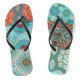 Inspirado no mar, coral do mar, ondas do oceano e a reflexão do pôr do sol e do sol, o Chinelo de Dedão Colagem de Designer Blue Wave é uma peça de destaque para o seu look de verão para compras, praia ou piscina, almoço, ou para relaxar confortavelmente em casa!
