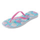 Conchas brancas e cor-de-rosa em chinelos de fundo azul-turquesa macio - chic de praia