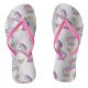 Um belo par de chinelos unicórnios (ou tangas) com um padrão de unicórnios coloridos arco-íris, com faíscas cor-de-rosa e azul vindas de seus chifres. Todos eles estão se erguendo nas pernas traseiras e estão cercados por espalhamentos de brilho dourado por um toque extra mágico.