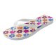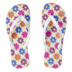 Retro style pattern of blue, pink, purple and orange penny flowers.