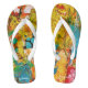 Uma pintura floral colorida e vibrante feita em acrílicas transformada em chinelos. Este belo par de sapatos de praia ou de mulher piscina vai adicionar cor e um toque de feminilidade a qualquer roupa casual de férias. Certifique-se de verificar o conjunto de cheios de vazamentos criados da arte por MyOtherSide.