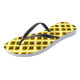 Um padrão de abstrato geométrico das estampas de uma pata de um animal de estimação em ouro, quadrados amarelos e negros decoram essas chinelos. Pode ser um gato, um cão ou outro animal!