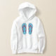 Uma ilustração de um par de chinelos de praia cor-de-rosa e azuis. É verão! O vamos faz uma pausa e diverte-te debaixo do sol. Você não está animado em preparar suas coisas para as férias? Não esqueça seus chinelos.