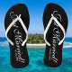 chinelos de praia de recem casados para noiva e noivo / mr e mrs casal. Adicione sua data de casamento. Nome personalizado flipflops elegantes para recém-casados e sua comitiva. Faça suas próprias sandálias personalizadas para noiva de equipe, noiva, madrinha de casamento, florista, mãe da noiva, mãe do noivo, tripulação, convidados etc. Folhas de verão bonitas para casamento de tema náutico ou praia perto da praia. Igualmente agradável como festa de casamento costeira para os hóspedes ou como viagem-chic presente para recém-casados que estão no destino de férias de lua de mel. Crie um conjunto único para ele e para ela. Na moda script typografia modelo com design com apelido de família ou letra inicial de nome de monograma personalizado. Crie seu próprio par de flipflops de classe para damas de honra, padrinhos de casamento e convidados. Sapatos engraçados de souvenir prontos para o evento de verão em julho, agosto etc. Cor da precinta branca, preta, rosa ou azul. Alterar quantidade para obter um preço de desconto barato. Cor de fundo personalizável.