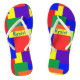 Estes chinelos coloridos apresentam um design de manta de retalhos em cores do arco-íris com um aspecto texturizado. Personalize ou remova facilmente o texto.