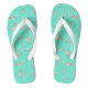 Na moda design com um toque retrógrado com flamingos rosa festivos vestindo chapéus de Papai Noel, estrelas e palmeiras decoradas com bolhas contra fundo aqua. Um design personalizável para você personalizar com seu próprio texto, imagens e ideias. Uma imagem de arte digital original criada por Quirky Chic.