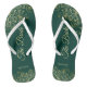 Dance a noite fora com essas belas chinelos de casamento. Projetados para a noiva, eles apresentam um design simples, mas elegante, com letras douradas em um fundo verde esmeralda e ricos de renda e espirais. Uma bela maneira de se manter rico e apropriado enquanto dá uma pausa nos pés depois de um longo dia.