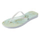 Dance a noite fora com essas belas chinelos de casamento. Projetados para a noiva, eles apresentam um design simples, mas elegante, com letras douradas em um fundo verde claro de menta nu, e ricos de renda e espirais. Uma bela maneira de se manter rico e apropriado enquanto dá uma pausa nos pés depois de um longo dia.