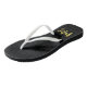 Perfeito para o verão e um dia na praia, este chinelos chic apresenta a palavra "Sra." em um roteiro falso de pincel de ouro contra um padrão de listras pretas. Faz presentes de excelente para recém-casados ou aniversários de casamento. Personalize isso substituindo o texto do marcador de posição pelo seu nome e para obter mais opções, como alterar a fonte e seu tamanho, clique no botão "Personalizar". *Observe que a Marca d'água do Zazzle que aparece na visualização de zoom não aparecerá no produto impresso final. ©Rosewood e Citrus