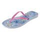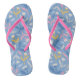 Um design floral de primavera bonitinho com flores divertidas em tons de azul, amarelo, rosa, branco e cinza. Estes chinelos têm uma estética tropical colorida.