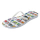 chinelos coloridos com padrão de câmera retrô.