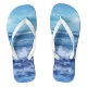 Este par de chinelos tem a minha fotografia do Oceano Atlântico com água azul e ondas piscando sob um céu azul com nuvens.