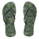 Chinelos pretos com um padrão de folhas verdes tropicais de palma, estas são perfeitas para vestir sua roupa para qualquer ocasião.