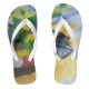 Chinelos que mostram a interpretação de Albert Smeraldo dos barcos de pesca de Van Gogh nos "Saintes Maries"