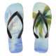 Praia Tropical. Iate no mar Palma num dia ensolarado. Aquarela. A ilustração da aquarela foi desenhada e digitalizada. A imagem será um bom presente e uma decoração interior maravilhosa.