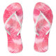 Flip flops num impressão tropical de silhuetas de palma sobrepostas, em tons de fúchsia cor-de-rosa e coral, contra fundo rosa-casca pastel