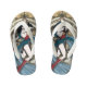 Mulher Maravilha envenenada no ar com uma faixa azul envolta em seu lasso, em um painel de arte ornamentado que faz referência aos deuses e mitologia gregos que diz: "Bonita como Afrodite, Sábio como Athena, mais forte que Hércules e mais esperta que Mercúrio".