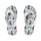 O design do produto apresenta um padrão de um pinguim fofo em pé com um tubo interno vermelho e branco e bolas de praia com um fundo azul claro. Este desenho animado de animal bonito com texto personalizado torna chinelos fofos e únicos para crianças.