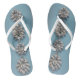 Esta é uma corda de quatro, flores prateadas com gemas de diamante no meio. O pano de fundo azul aqua traz as joias prateadas e as tiras brancas complementam as matizes prateadas e azuis. elegância simples.