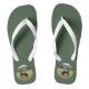 Este par de chinelos é verde-escuro com uma fotografia em círculos cortados de um alce macho marrom com galhadas a pastorear num campo de erva com um celeiro no fundo.