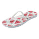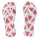 Um par de chinelos com fatias de melancia dispostas em um padrão fofo em rosa, verde e branco. Perfeito para o verão ou férias para um amante de melancia.