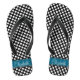 Chinelos Monograma Azul de Padrão de Bolinhas Preto e Branc