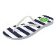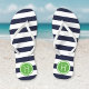 sandálias de flutuação de sacudir impressas personalizadas com um padrão de stripe náutica de pré-disquete e seu monograma personalizado ou outro texto em um quadro circular. Clique em Personalizar para alterar as fontes e cores do texto ou adicionar suas próprias imagens para criar uma única design!
