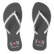 Sandálias de sacudir impressas personalizadas personalizadas com um coração fofo e suas iniciais de monograma e data de casamento. Clique em Personalizar para alterar as fontes e cores do texto ou adicionar suas próprias imagens para criar uma única design!