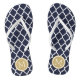 sandálias de flutuação de sacudir impressas personalizadas com um padrão quatrefoil marroquino na moda e seu monograma personalizado ou outro texto em um quadro circular. Clique em Personalizar para alterar as fontes e cores do texto ou adicionar suas próprias imagens para criar uma única design!