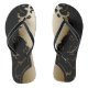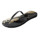 Chinelos pretos com um design metálico de ouro no estilo vitoriano. Um design elegante.