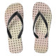 O padrão original do HomeWare nesses Chinelos largos é exatamente o que é chamado, um padrão de grade feito de uma fotografia original da parte de trás de uma cadeira. Cinzas escuras e pontos quadrados castanhos em filas formam a grade. As linhas curvam ligeiramente como a cadeira. Aproximadamente, os pequenos pontos quadrados são buracos com cantos arredondados e uma dimensão de sombra ao redor das bordas superior e direita. As cores do corpo da cadeira são tons úmidos da natureza, verde-sábio pálido se misturando em massa pálida, macia, marrom-arenoso, parecendo que eles tinham sido pintados. Este desenho abstrato, com seu sofisticado esquema de cores, tem um aspecto muito moderno.