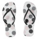 Chinelos modernos e brancos com padrão de pontos grandes e preto. Chinelos divertidos e únicos que serão um sotaque perfeito para qualquer roupa. Outras cores estão disponíveis.