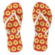 Essas na moda, chinelos femininas são perfeitas para sair do chá ou pisar na praia e apresentar a foto de uma flor amarela Dahlia em um fundo vermelho e impressa em um padrão repetitivo. Um design floral divertido! Selecione o tamanho do pé junto com outras opções.