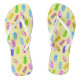 Um par fofo de chinelos com um padrão colorido de sandálias de sacudir em um fundo amarelo claro! O acessório perfeito para alguém que ama chinelos e padrões brilhantes.