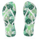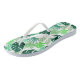 Chinelos adultos perfeitos para toda sua diversão de verão, mostrados aqui em um impressão de palmeiras tropical com tiras brancas e solas brancas. Personalize você mesmo ou o comprar como está.