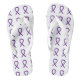 Os calçados flutuantes de sacudir apresentam uma faixa de reconhecimento roxa. A cor de fundo pode ser modificada para qualquer combinação de cores que você preferir. Adicione o texto da sua própria causa aos chinelos. A cor da fita de sensibilização roxa mostra apoio ao Câncer de pâncreas, à Doença de Crohn e à Colite, à Doença de Alzheimer, à Bullying Anti-Gay (Dia do Espírito), ao Sobrevivente de câncer (Todos os tipos), à Violência Doméstica, Lúpus, Síndrome de Sjögren, Dor Crônica, Leiomiosarcoma, Malformação Arnold-Chiari, Migrações, Cística colofônia, Retinite Pigmentosa e Fibromialgia mais. As sandálias de arte em fita de reconhecimento roxo podem ser personalizadas com mensagens personalizadas para fazer com que o excelente cause mercadorias ou roupa para angariadores de fundos, presentes de conscientização, caminhadas em equipe ou outros eventos e ocasiões especiais.