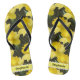 Sandálias na moda do verão a personalizar. Este é um design floral do primavera criado com fotografia da natureza dos Daffodils amarelos cortados digital para criar um teste padrão repetido sem emenda. O fundo é a arte digital que se assemelha a listras amarelas onduladas sobre um fundo preto. Há um texto com um modelo no salto assim que você pode facilmente mudar a palavra seus conhecido, inicial, ou ao monograma.