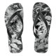 Chinelos Pretos e Brancos de Folhas Tropicais para
