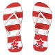 Um padrão brilhante e colorido de listras vermelhas e brancas com um gráfico estelar embelezado por fita que contém seu monograma personalizado o deixa pronto para a diversão de verão. Estes chinelos são uma escolha excelente para festas e eventos de 4 de julho ou para mostrar seu orgulho patriótico o ano todo. Personalize com seu monograma.