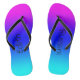 Chinelos coloridos com gradiente rosa, azul, turquesa e modelos de texto preto personalizáveis para o seu nome.