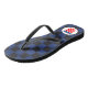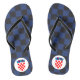 Esses chinelos apresentam um padrão de tabuleiro de xadrez preto e azul e o casaco de braços croata.