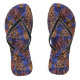 Chinelos pretos com faixas de zebra marrons e manchas-leopardo em um fundo azul, marrom, ouro e laranja, estes são o acessório perfeito para vestir sua roupa para qualquer ocasião.